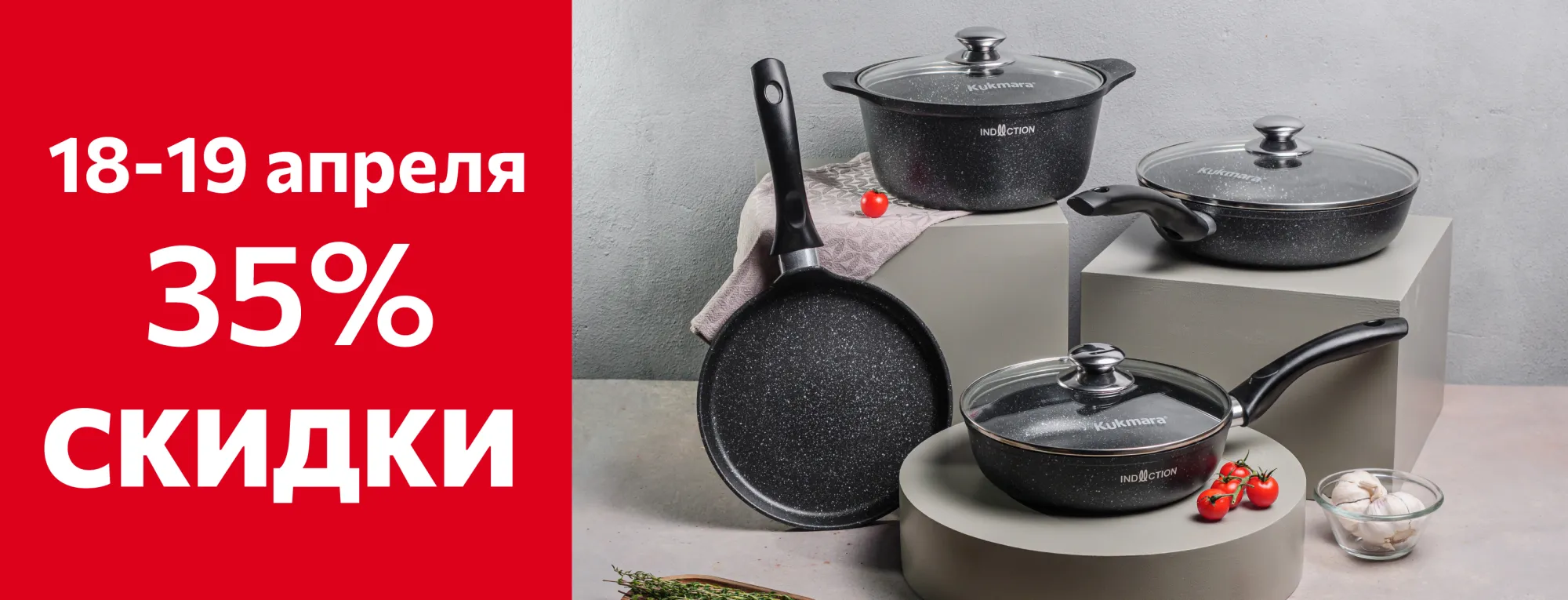 скидка 35 % на посуду с антипригарным покрытием линий «Мраморная» и «Мраморная Индукционная» в интернет‑магазине предприятия.